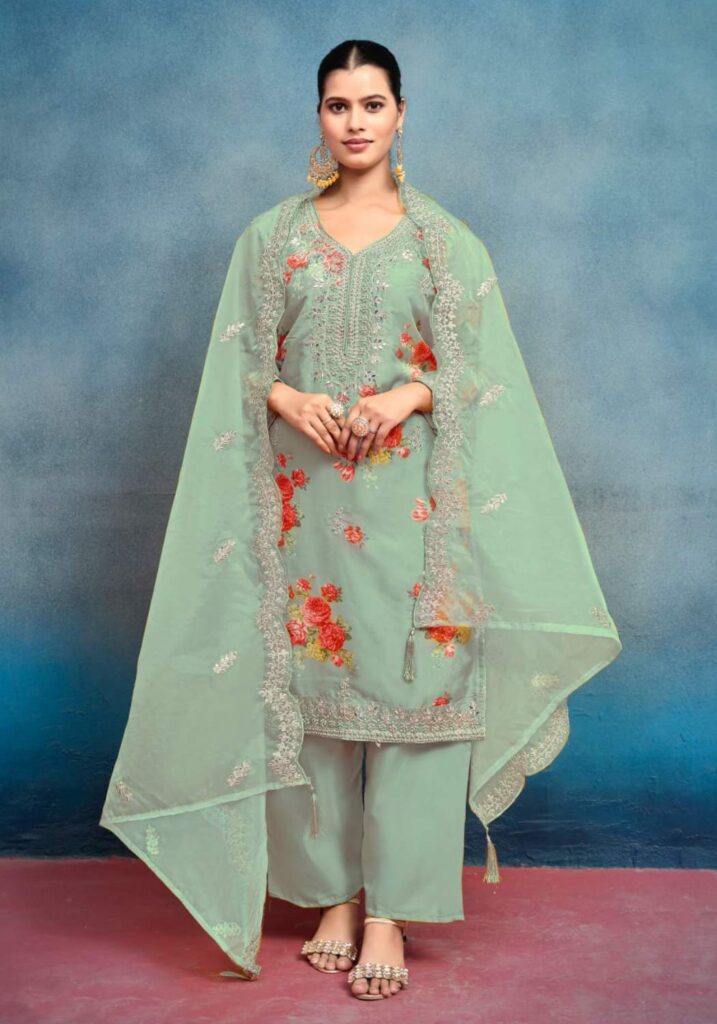 YD -023 Heavy Fendi Silk Gown Dupatta With Sequence Work