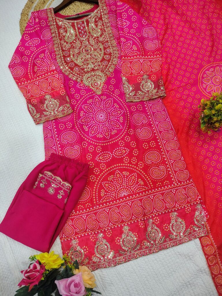 | Fabric Type | Top : Pure Chinon With Heavy Embroidery Coding Dori-Sequence Work With Beautiful Digital Print And Real Mirror with Full Sleeve With Heavy Micro Cotton Inner , Length:44-45inch Bottom : -Heavy Micro Cotton With Embroidery Coding Dori-Sequence Work With Elastic ,Size: Fully Stitched Dupatta :Pure Chinnon With Heavy Digital print. |