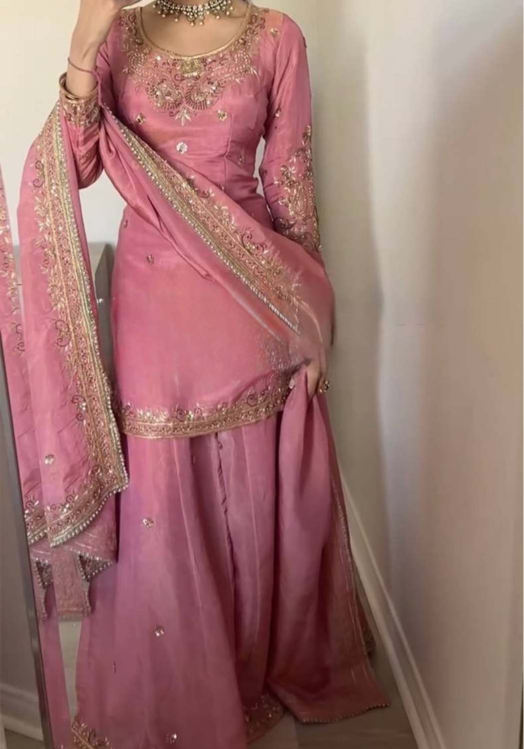 ZF-420 Crepe Silk Palazzo Set with Sleeve & Dupatta