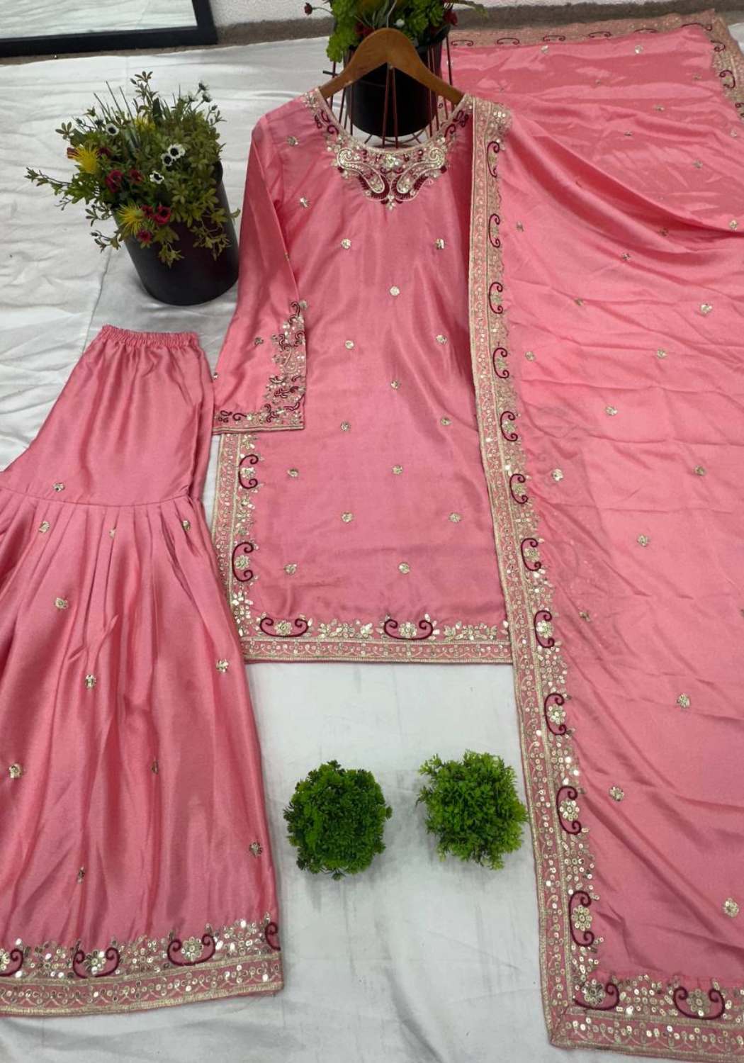 ZF-408 Designer Wear Chinon Palazzo SUIT Collection Full Catalog Available At Wholesale Rate.