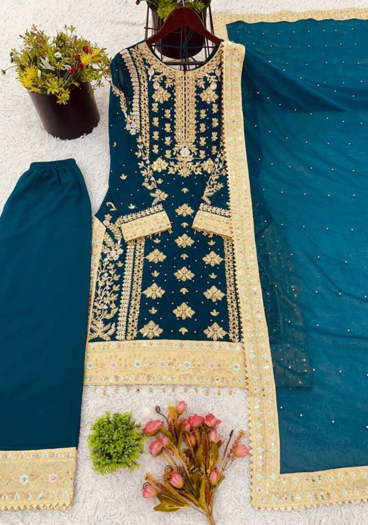 Fabric Type | Top:- Georgette with Inner-Heavy Micro Cotton Plazzo : Georgette with Inner-Heavy Micro Cotton Dupatta -Georgette with Moti work |