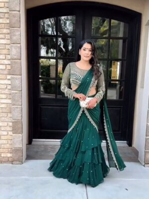 6491 Georgette Lehenga Saree with Thread & Sequins
