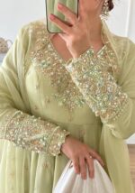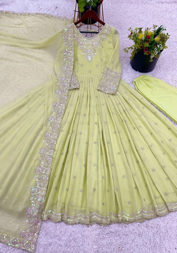 Fabric Type | Gown: Heavy Georgette With Full Heavy Embroidery Rembo Sequence Work With Moti Work with Sleeve With Micro cotton Inner, Length:51-52 Inches , Flair:3 Meter Bottom : Heavy Micro Cotton ( Full Stitched ) Dupatta : Heavy Georgette With Heavy Embroidery Rembo Sequence Work |