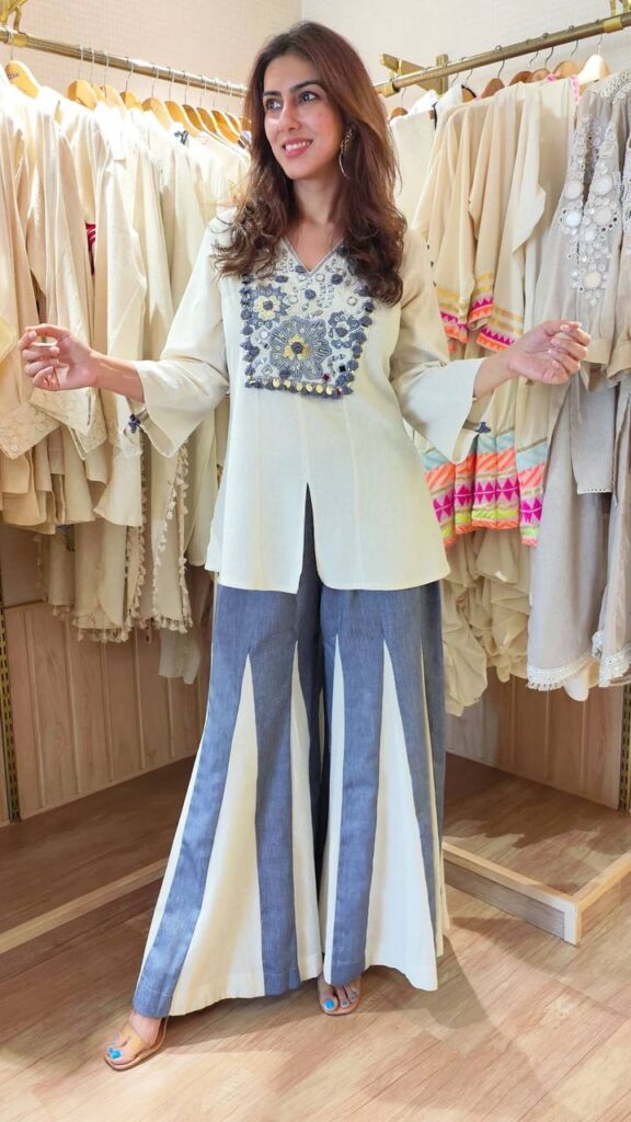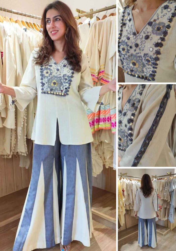 Fabric Detail | Top : Pure Roman Silk Hand Work Embroidery Work With Real Mirror Work and Lace Work , Length : 27-28 inch Plazzo : Pure Roman Silk with Full flair ,Pent Length: 39-40 inches. |